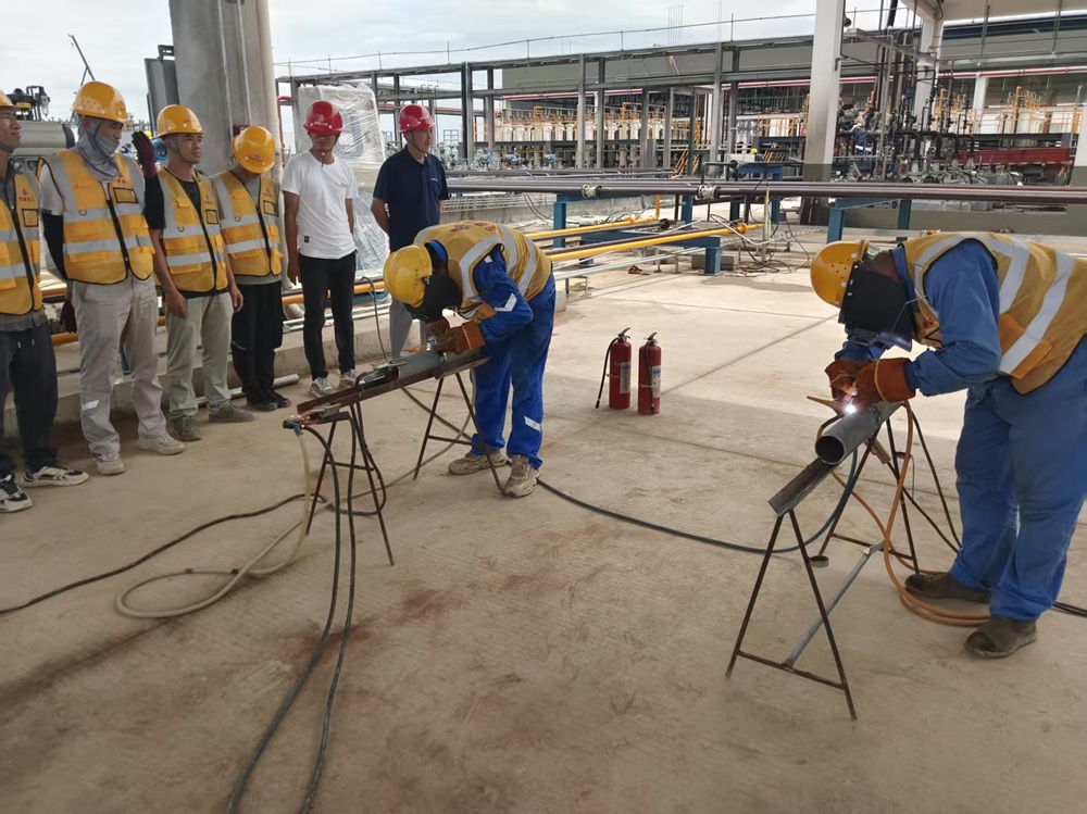 本次比賽共有6名焊工參賽。比賽分為理論考核和實際操作考核兩部分,理論考核涵蓋焊接基礎知識、安全規(guī)范等內容;實際操作考核設置了管道焊接、板材對接焊兩個項目,重點考察選手的焊接操作技能、質量控制能力和現(xiàn)場應變能力。比賽由項目技術負責人、安裝負責人擔任評委,確保了比賽的專業(yè)性和公正性。